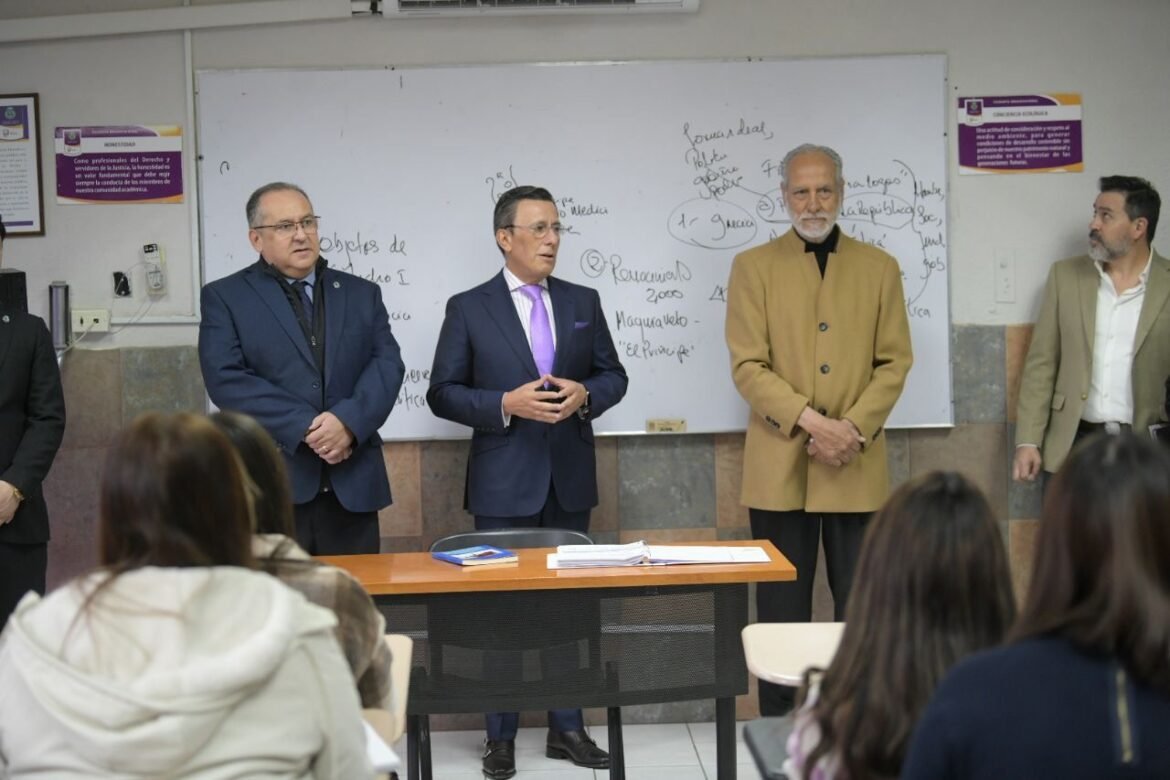 Después del encuentro con los alumnos de Ciencias Forenses, el rector visitó a los estudiantes de primer semestre de la Licenciatura en Derecho, a quienes motivó en su primer día de clases y reconoció la importancia de este momento en su formación académica.