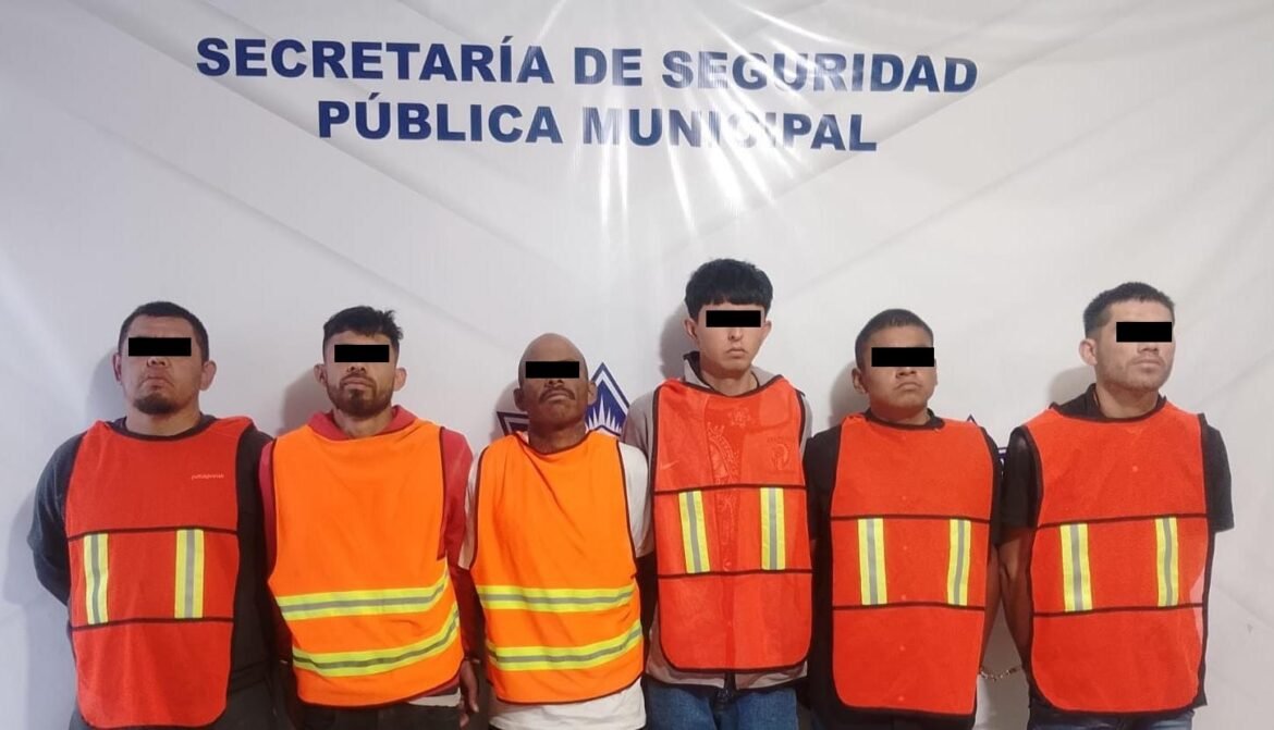 Agentes de la Secretaría de Seguridad Pública Municipal detuvieron a Miguel Ángel R. R., Juan Daniel C. D., Edgar Valentín L. C., Juan Guillermo M. A., Yatzeel F. P. y Eduardo Aaron C. C., por su presunta responsabilidad en la comisión del delito de violación a la ley federal de armas de fuego y explosivos, mismos que serán investigados por un homicidio ocurrido en la colonia Granjas Polo Gamboa.
