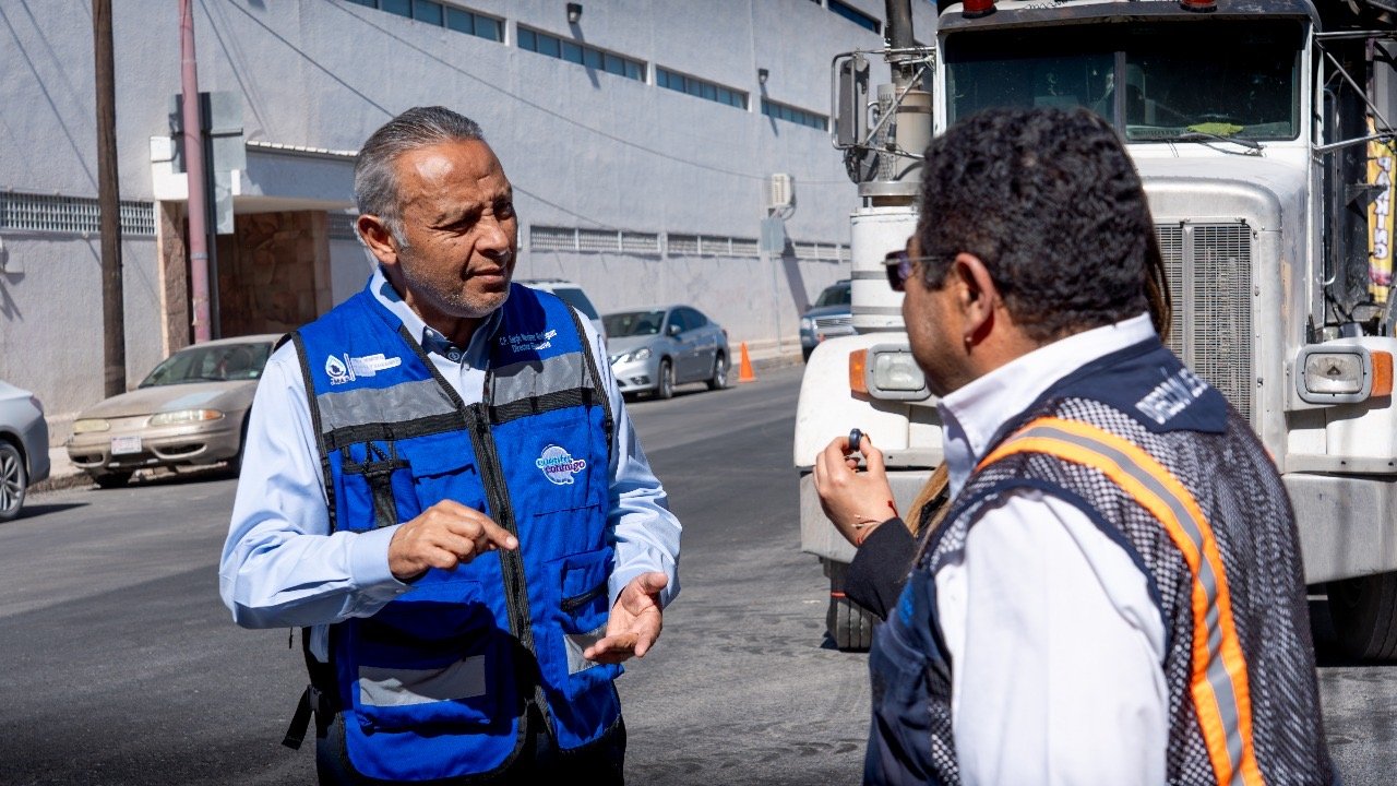 El director ejecutivo de la Junta de Agua y Saneamiento de Juárez, Sergio Nevárez, supervisó los trabajos finales de la obra integral realizada en la calle Lerdo.
