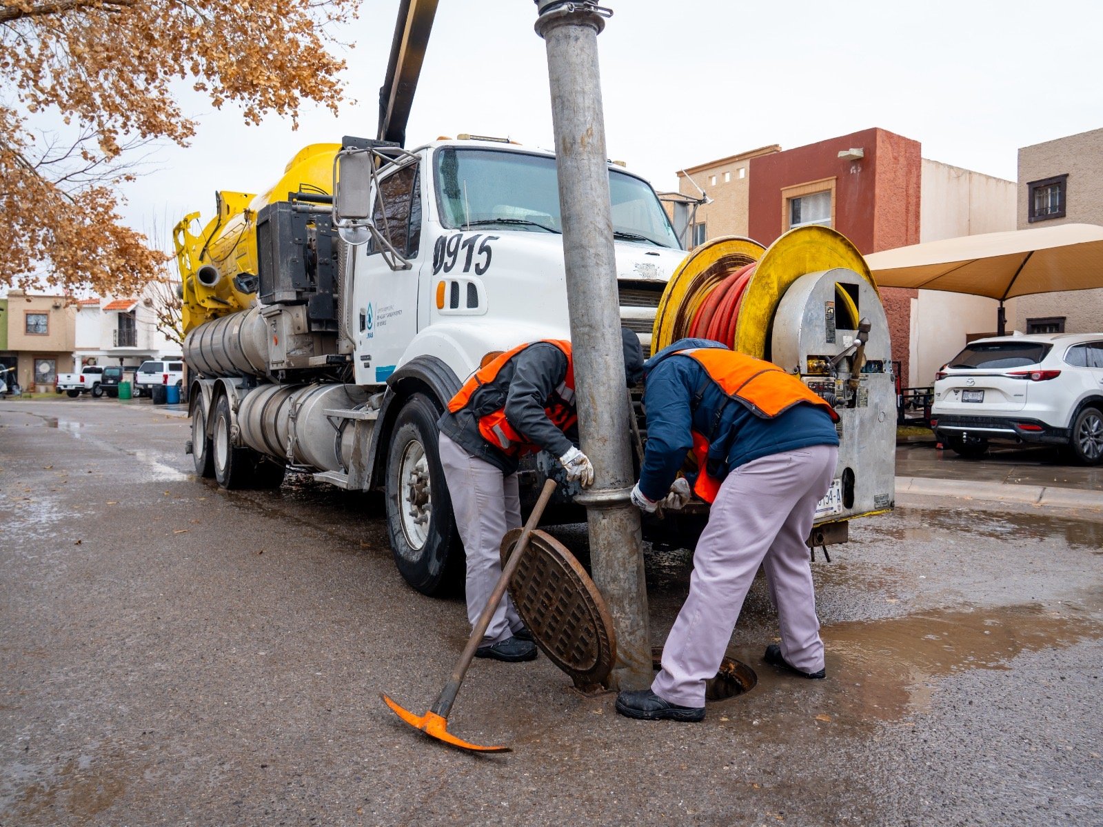La Junta de Agua y Saneamiento de Juárez, realiza trabajos de mantenimiento preventivo en la red sanitaria en el fraccionamiento Paseos de San Pablo, para mejorar el funcionamiento del sistema de alcantarillado.