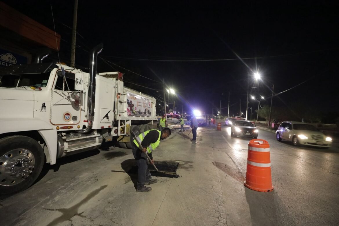 Ayer por la noche, cuadrillas de bacheo de la Dirección General de Obras Públicas y de empresas contratadas trabajaron de manera nocturna en diversos puntos de la ciudad.