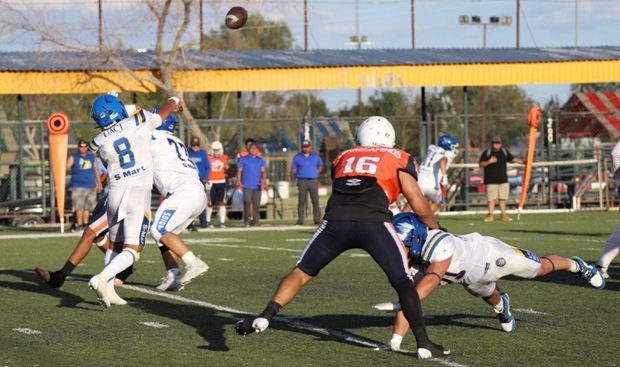 Sin embargo, después del último tropiezo de la UACJ, separando 4:53 del segundo cuarto, la ofensiva visitante continuaba mostrando firmeza: el mariscal (#10) efectuó un pase de 24 yardas al corredor (#8), desarticulando las aspiraciones locales, manteniendo a raya el marcador 7-6.