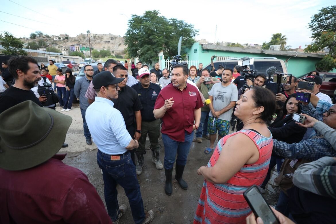 El Presidente Municipal, Cruz Pérez Cuéllar acudió a la colonia Fronteriza Baja para visitar a los vecinos afectados por las lluvias de esta madrugada, para conocer su situación y hacerles saber que ya se trabaja para darles todo el apoyo que sea necesario.