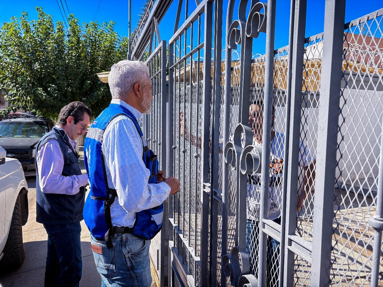 “Estamos en el fraccionamiento Placitas dos, uno de los fraccionamientos que comprende el polígono que trabajamos esta semana; estamos tomando la impresión de los vecinos después de haber concluido la jornada de atención”, comentó Isidro Morales, de la Dirección Técnica de la J+, mientras visitaba los domicilios de los usuarios.